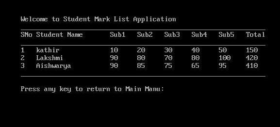 Console.WriteLine("Welcome to Student Mark List Application");