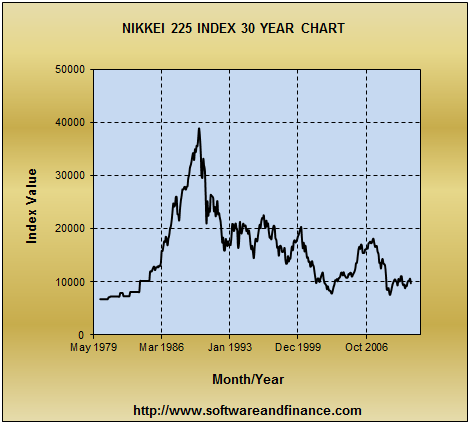 Most people do know that NIKKEI 225 is the index for Japanese Stock Market and it is trading around 9000 to 16000 for the last 10 years. Only very few people know that NIKKEI 225 was trading above 38,000 before 20 years. Note: 38,000 is not a misprint. The all-time high for NIKKEI stock index is set on December 29, 1989 at 38,957.44 (intra-day high).