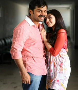 The film begins with a serious note with the death of CM played by Chandramohan, a political conspiracy hatched by Bhupathi (Prakash Raj) and Kiran Rathod. But immediately after the direction changes into complete comedy track with Kamala Kannan alias Kamal (Karthi) and auto driver Apparao Durai alias Rajini (Santhanam), who assume that the former is rich and driving him through the city is profitable for him.