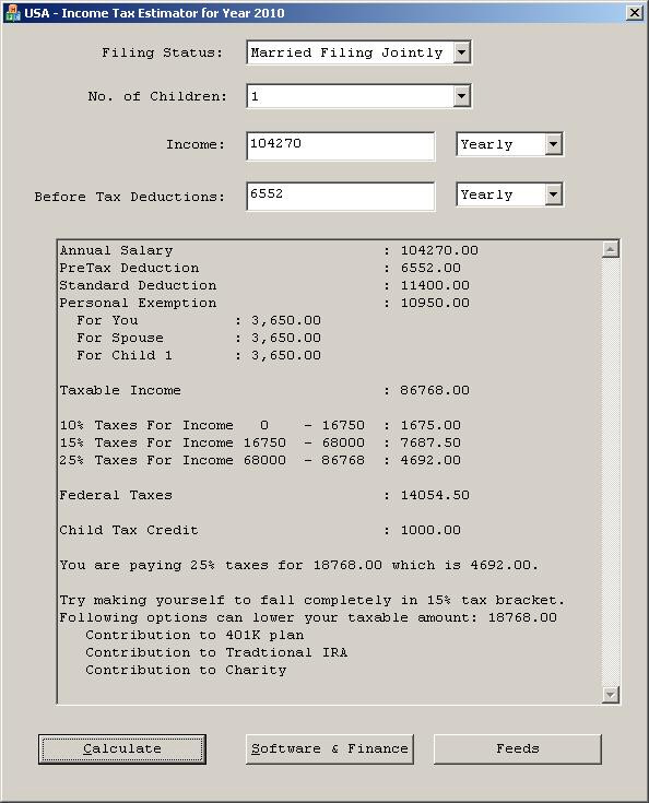 Click here to download the USA - Income Tax Estimator for Year 2010.