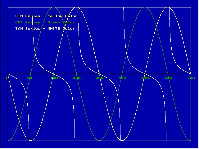 Turbo C Graphics - Plot Sin Cos and Tan Series