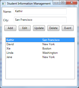 Here is the complete source code for student information management explaining the concept of WPF Binding.