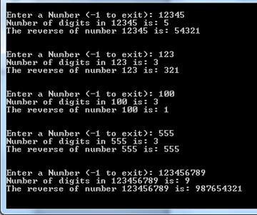 printf("\nProgram to find the reverse of a number. Enter -1 to exit");