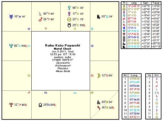 Rahu and Ketu Peyarchi Palangal - June 08, 2011 12:53 PM to Dec 25, 2012 3:49 PM